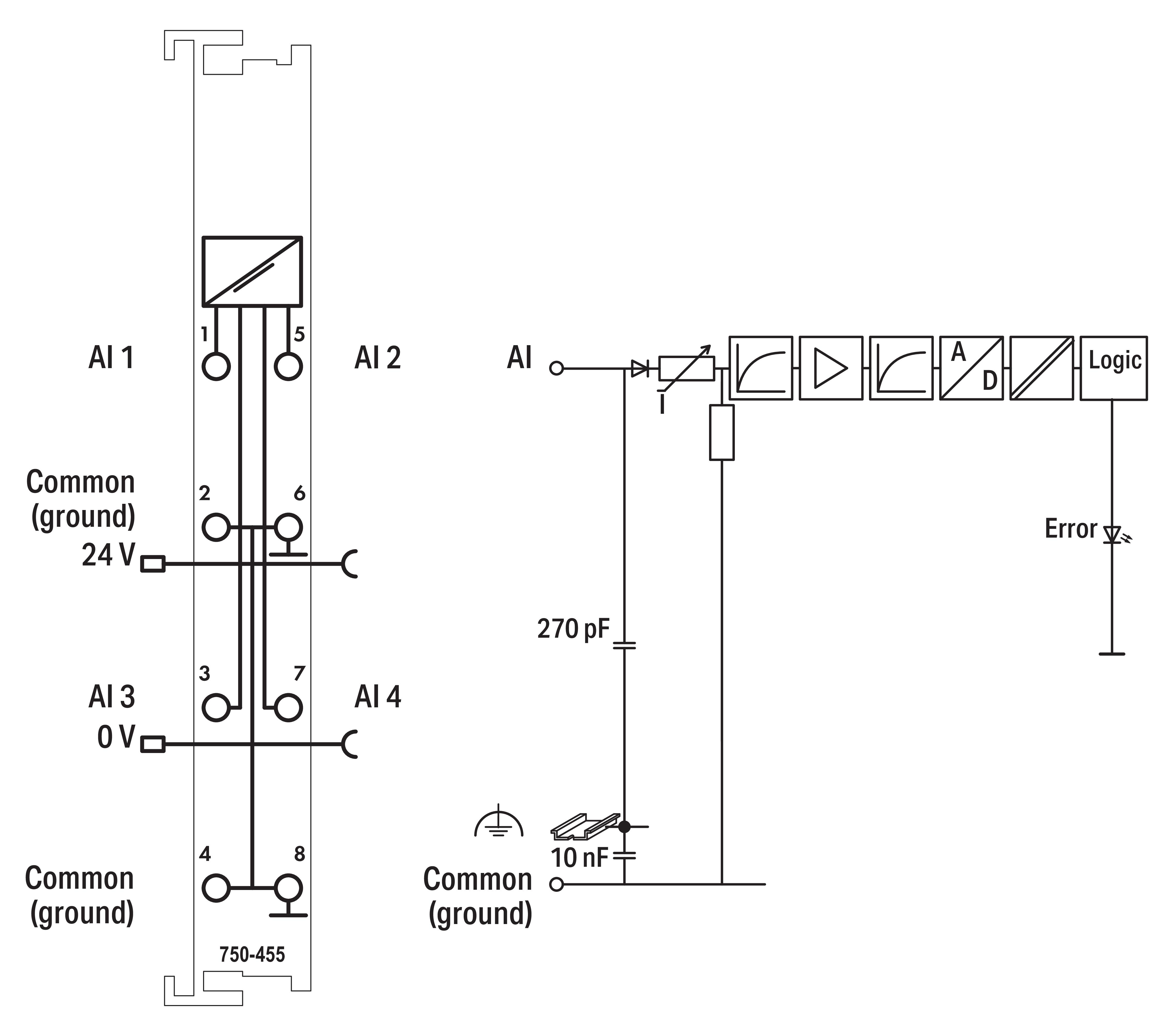 Die Eingangskanäle des Moduls besitzen ein gemeinsames Massepotential.