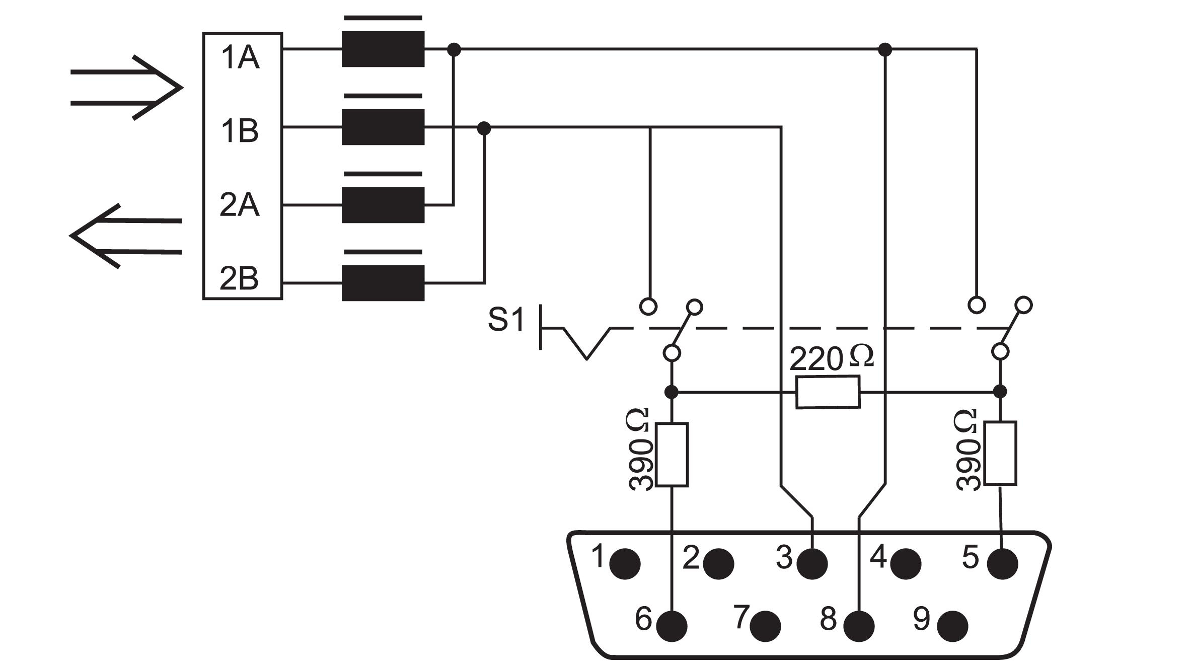 Beim ersten und letzten Busteilnehmer muss der Terminierungsschalter auf ON stehen. (Abschlusswiderstand zugeschaltet). Bei nachfolgenden Busteilnehmern auf OFF . (Abschlusswiderstand abgeschaltet).